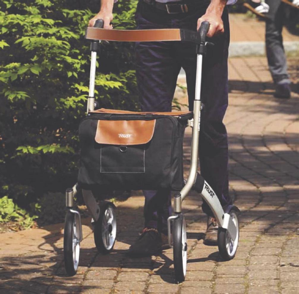 Léger et élégant, il ne pèse que 6,2kg. Il est aussi facile à replier pour le transport ou le rangement. Les grandes roues avant facilitent le franchissement d’obstacles comme des bordures ou autres surfaces accidentées. Les poignées en matériel souple ergonomiques sont réglables en hauteur. Le siège est en simili cuir lavable. Le Let’s Go Out est livré avec un sac élégant et amovible. Il est également possible d’obtenir un porte-canne ou un plateau pour le déambulateur.