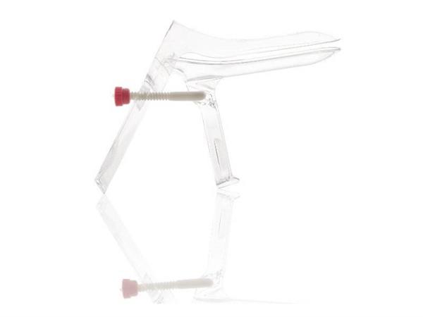 Spéculum vaginal de Cusco à usage unique en plastique transparent, avec vis de fixation. Les spéculums hygiéniques disposent d'un code couleur et sont emballés individuellement en stérile.