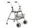 Ce cadre de marche, 253, a deux roues avant et deux boutons en caoutchouc arrière ce qui vous permettent d'enlever l'arrière et de pousser en avant prudemment. En utilisant ce rollator vous entrainez les muscles des jambes ainsi que les muscles du bras. Dès que vous posez le rollator, il freine parmi les boutons caoutchouc.