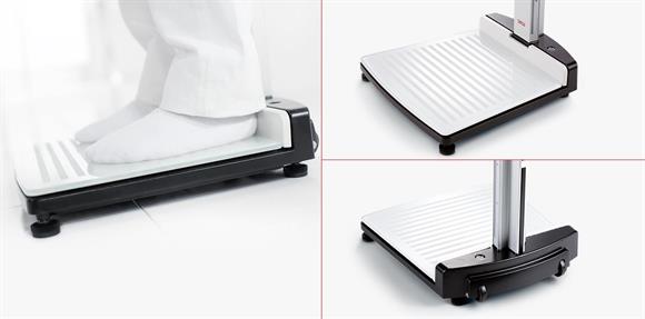 Parmi les autres avantages, citons la plateforme en verre stable à la capacité élevée intégrée au pèse-personne, la butée de talon ainsi que l’appuie-tête du curseur robuste avec « ligne de Francfort » seca intégrée pour un alignement précis de la tête. De plus, elle se distingue par ses deux affichages.
