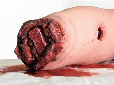 Les étudiants gagneront en confiance dans la prise en charge des saignements complexes à l’aide de garrots et acquerront des compétences en matière de pansage des plaies et de gestion des amputations. La jambe d'entraînement P103 est dotée de trois modèles de plaies différents : lacération profonde (environ 4 cm) dans la région de l'aine, blessure par balle de part en part (GSW) avec plaies d'entrée et de sortie dans la partie haute de la cuisse, amputation dans la région du genou.
