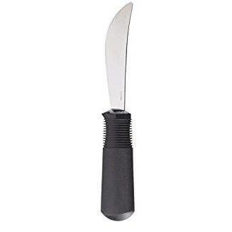 Les couverts Good Grips® ont un manche doux qui absorbe les chocs. Les manches confortables sont fabriqués en matériel légèrement caoutchouteux avec des nervures flexibles qui s’adaptent à chaque main. La forme est ronde et légèrement conique.