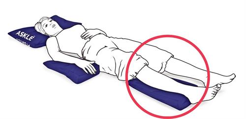 Ce coussin permet d'assurer le calage de la position avec un modulaire base et de prévenir la constitution d'escarres au niveau des talons pour la mise en décharge totale des talons en décubitus dorsal. L'inclinaison du coussin favorise le retour veineux.