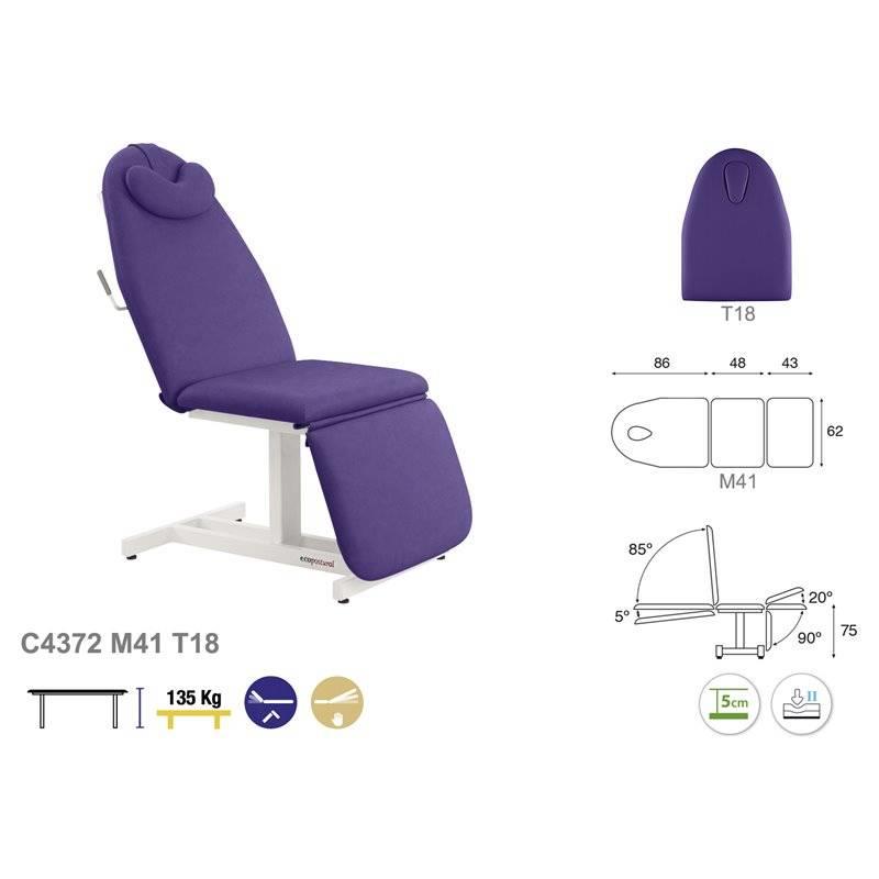 Fauteuil fixe en 3 plans, il dispose d'accoudoirs afin d'offrir un confort supérieur au patient. Le fauteuil convient à de nombreuses disciplines tels que : podologie, estéthique, réflexologie, etc.