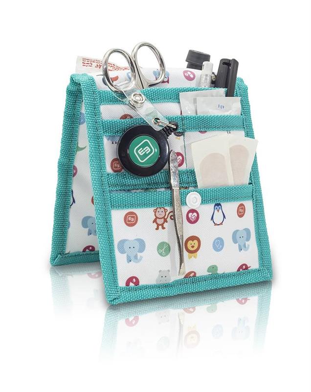 Cette pochette est conçue afin de pouvoir être contenue dans une poche de blouse d'infirmière. La pochette permet de stocker tout le petit nécessaire hospitalier dont les infirmières ont régulièrement besoin. Par exemple, la pochette peut contenir des robinets à trois voies, une torche médicale,...