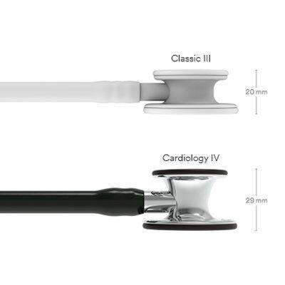 • Construction ergonomique et de haut profil ; pièce de poitrine 40% plus grande et cloche 60% plus profonde que le 3M™ Littmann® Classic III™ Stéthoscope