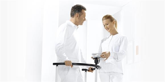 La plateforme basse et facilement accessible, un solide garde-corps et la grande capacité de cette balance multifonctionnelle permettent une pesée assistée de personnes handicapées et facilitent la pesée des personnes obèses.