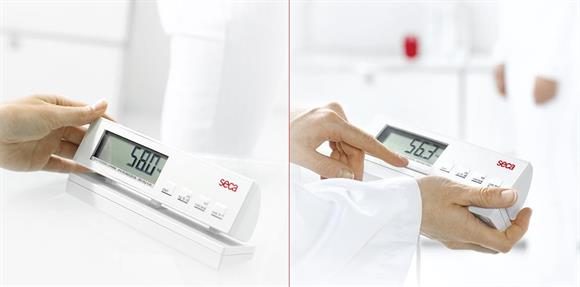 L’avantage : l’unité d’affichage de la balance peut ainsi être posée sur une table ou accrochée au mur pour une lecture commode. La pesée n’est pas moins confortable grâce aux nombreuses fonctions de la balance : BMI pour le contrôle du statut nutritionnel, HOLD pour garder le résultat affiché et TARE qui permet par exemple de peser les enfants en bas âge dans les bras de leurs parents.