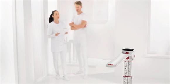 Cette toise télescopique peut équiper ultérieurement de nombreuses balances à colonne seca. Elle permet une lecture commode de la taille à hauteur des yeux, même pour les personnes de petite taille.