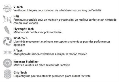 Préscrit en prévention de lésion ligamentaire légère à modérée, Inflammation rotulienne ou tendineuse, Douleur globale du genou.