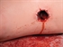 Un tube lacéré installé en profondeur peut être palpé manuellement au niveau du vaisseau sanguin lésé. La plaie jonctionnelle et la plaie par balle peuvent être pansées avec de la gaze.