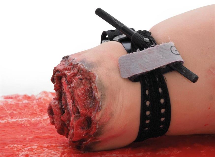 La pose du garrot peut être « haute et serrée » à l'extrémité proximale du membre ou à 5-8 cm au-dessus de la plaie. Si le garrot est correctement appliqué, le saignement s'arrête automatiquement par occlusion mécanique des vaisseaux sanguins. Il est également possible de s'entraîner à la pose de deux garrots.