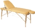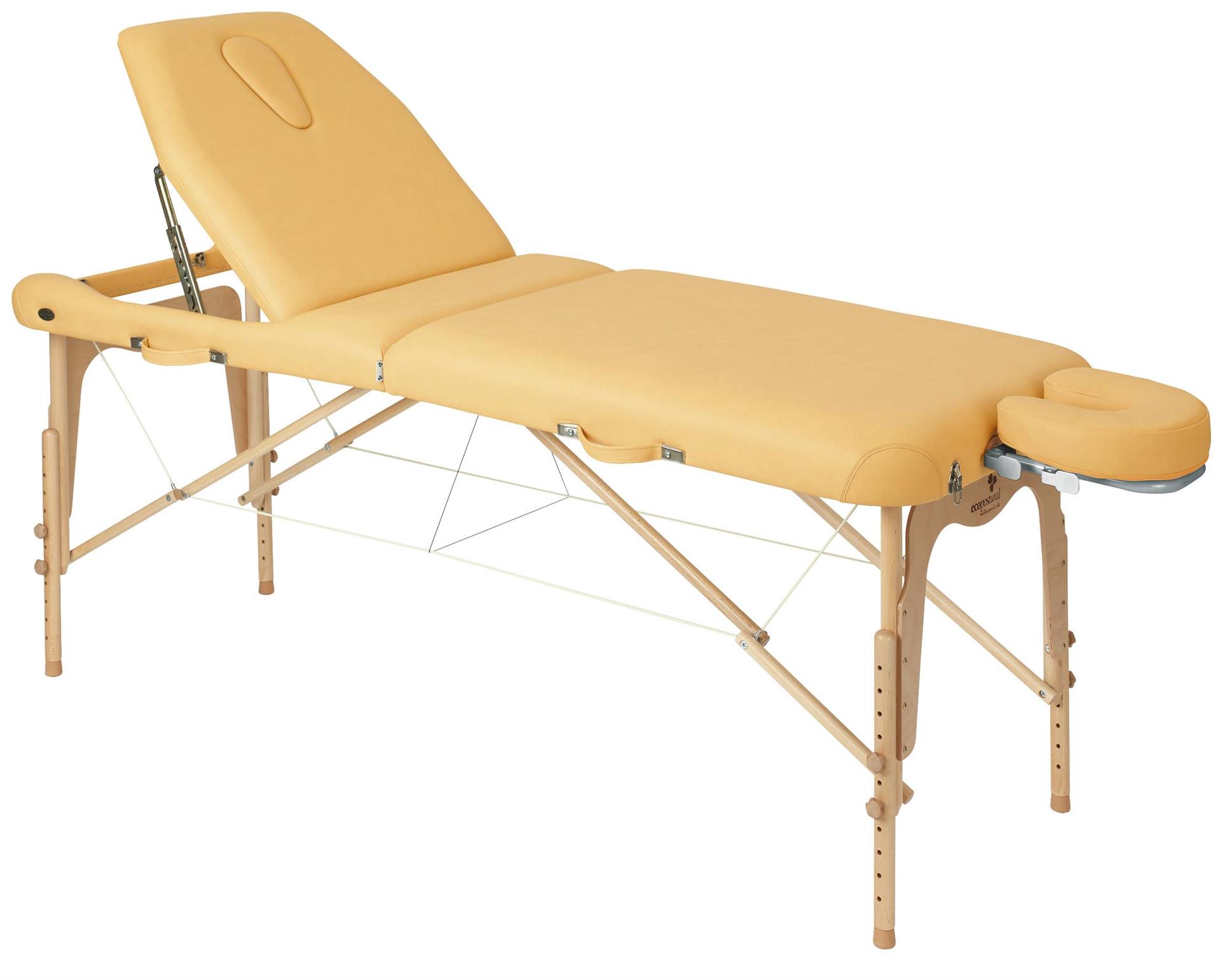 La table est fabriquée en bois et dispose d'une cavité faciale pour plus de confort. Il est possible de transporter la table facilement en la repliant et en utilisant les poignées incorporées.
