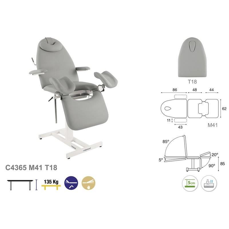 Le fauteuil hydraulique avec possibilité d'inclinaision de -7° à +75°. La hauteur reste fixe et s'élève à 85cm.