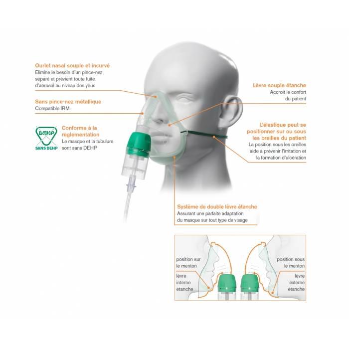 • Masque confortable car léger et souple et sans PVC, offrant ainsi une option sécuritaire sans DEHP et à faible impact environnemental