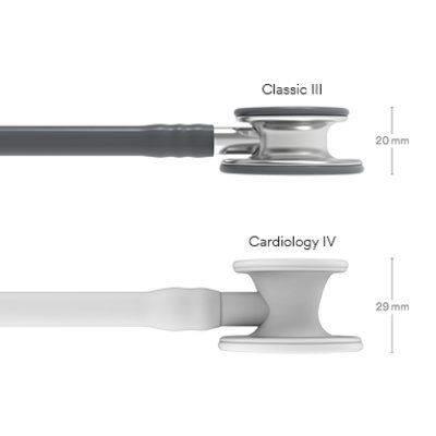 • Diaphragmes accordables sur les côtés adulte et pédiatrique de la poitrine. Le côté pédiatrique est utile pour les patients petits ou minces, autour des bandages et pour l'évaluation de la carotide.