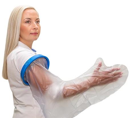 Lorsque vous prenez une douche, nos housses gardent vos moulages, plâtre, bandages et plaies au sec, en sécurité et propres.