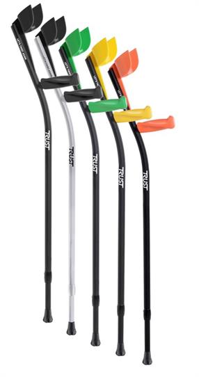Les béquilles suédoises de la marque TrustCare sont disponibles en noir, argent, vert, orange et jaune. Outre le design attrayant de ces béquilles, elles sont également très ergonomiques.