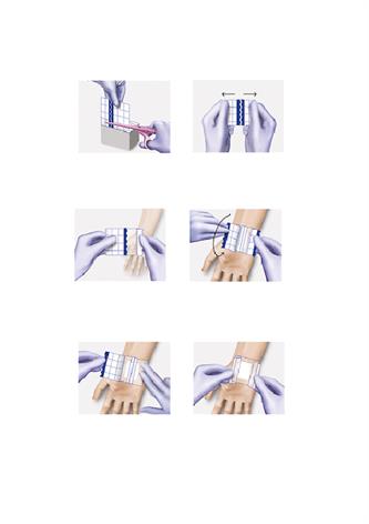 Pour la fixation et la couverture complète et imperméable de pansements dans tous les domaines médicaux, en particulier lorsqu'une surveillance de l'absorption d'exsudat par le coussin de plaie est souhaitée ou pour la couverture imperméable, par exemple pour la douche. Idéal pour la fixation de pansements aux articulations et aux parties arrondies ou coniques du corps. Pour la fixation d'instruments de mesure, de sondes, de cathéters, etc. chez des patients à peau sensible.