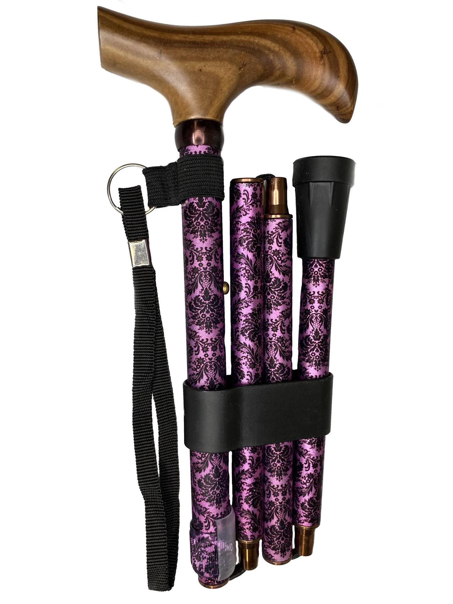 Canne de marche avec manche en bois courbé dans un motif fantaisie.