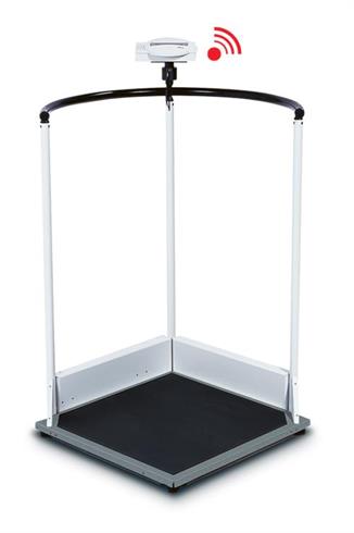 La plateforme basse et facilement accessible, un solide garde-corps et la grande capacité de cette balance multifonctionnelle permettent une pesée assistée de personnes handicapées et facilitent la pesée des personnes obèses.
